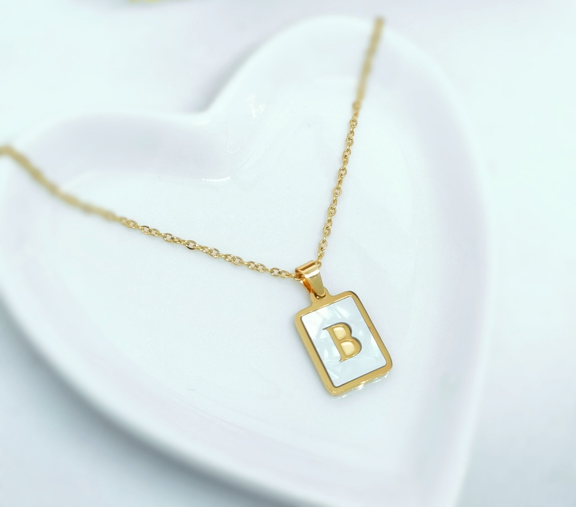 Initial B Letter Necklace Stainless Steel 18K Goldplated
